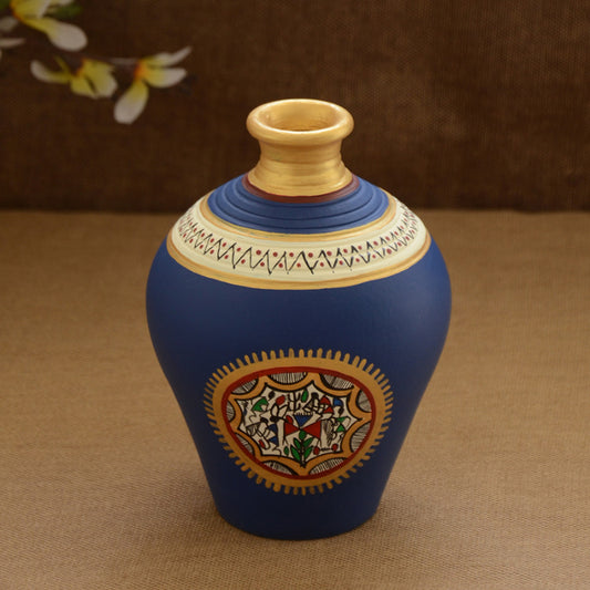 Blue Art jaipur pottey Ceramic Unique Decorative Vase for Home Decor, (8.5 X 3 Inch, Blue & White)