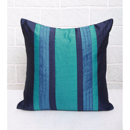 Blue Patch Stripe Silk Cushion Cover (Set of 5)