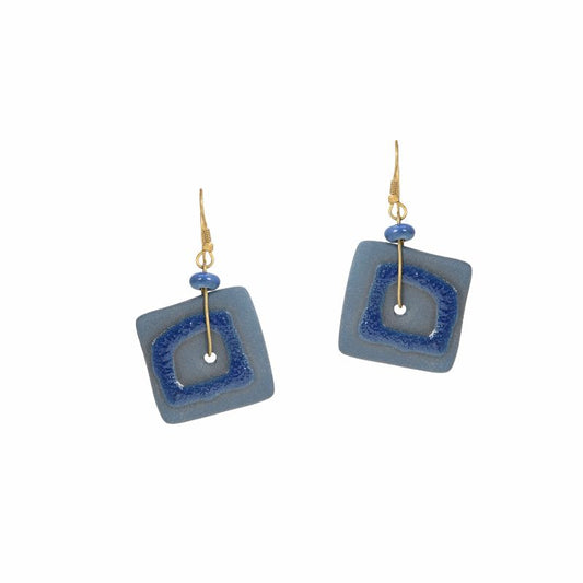 Ceramic "Shades of Village" Cutting Chai Cups with Trays(6 Cup, 1 Tray)