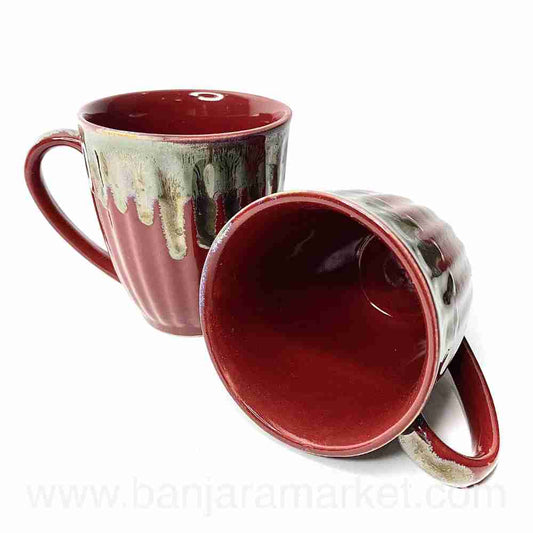 Banjara Market | Maroon Mugs with Dripping Silver (Set of 2)