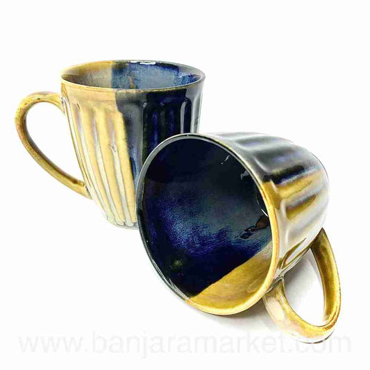 Banjara Market | Blue-Mustard Dual Tone Mugs (Set of 2)