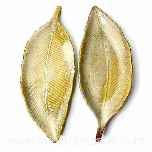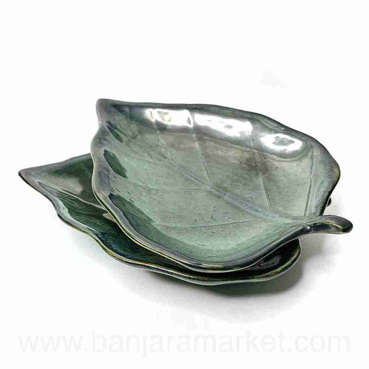 Banjara Market | Big Green Leaf Platters (Set of 2)