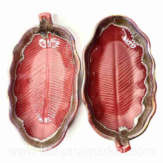 Banjara Market | Maroon Leaf Deep Platters (Set of 2)