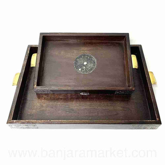 Banjara Market | Big Wooden Tray with Metal Handles