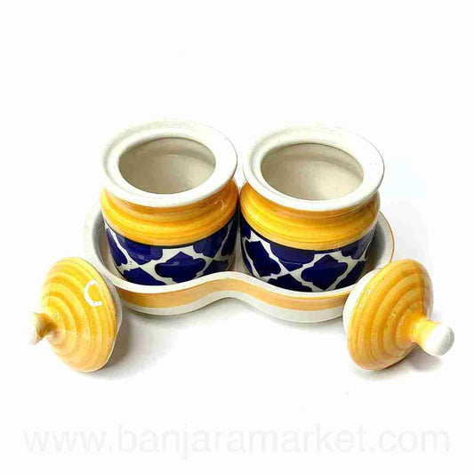 Banjara Market | Yellow-Blue Moroccan Pickle Jars (Set of 2)