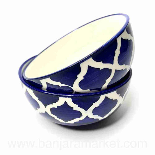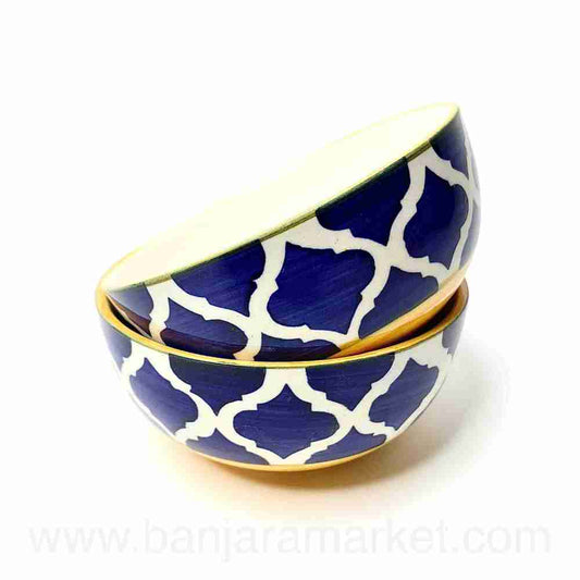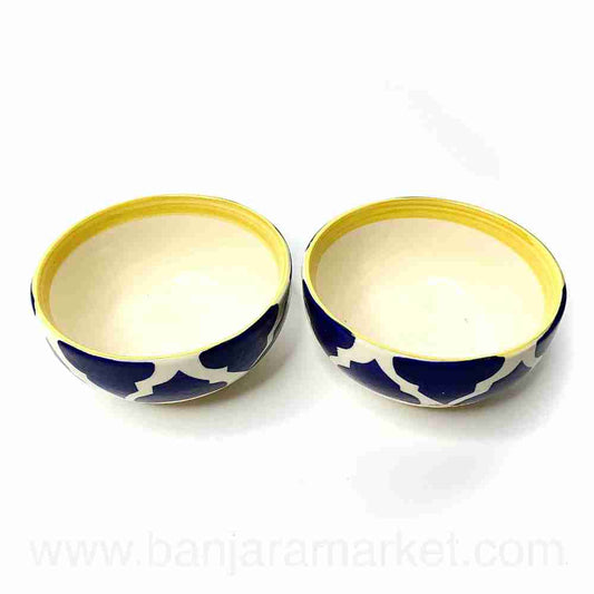 Banjara Market | Yellow-Line Blue Moroccan Small Bowls (Set of 2)