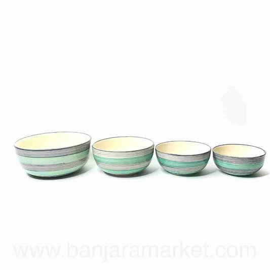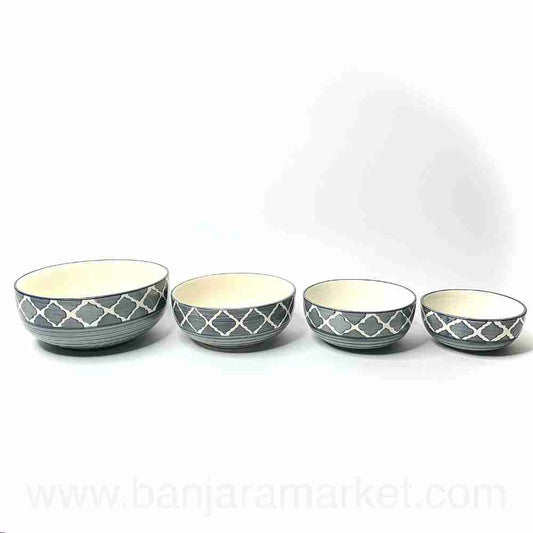 Banjara Market | Blue-Grey Rings Serving Bowls (Set of 4)