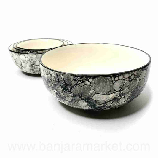 Banjara Market | Grey Bubble Print Serving Bowls (Set of 4)