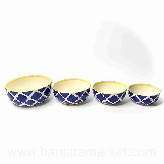 Banjara Market | Yellow-Border Blue Moroccan Bowls (Set of 4)