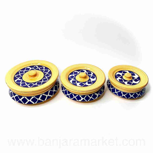 Banjara Market | Yellow-Blue Moroccan Degchi (Set of 3)