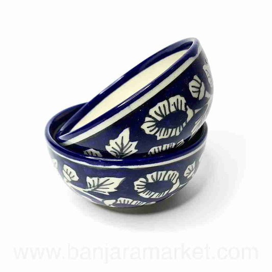 Banjara Market | Blue Mughal Print Small Bowls (Set of 2)