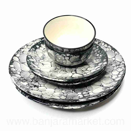 Banjara Market | Grey Bubble Print Dinner Set (Set of 12)