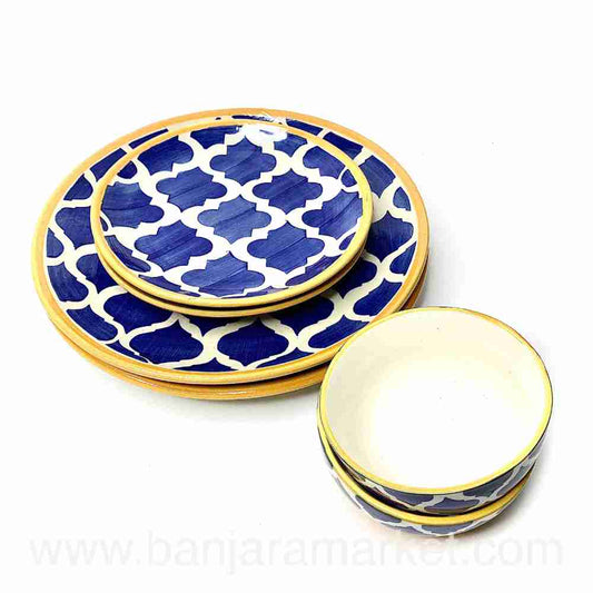 Banjara Market | Yellow-Line Blue Moroccan Dinner Set (Set of 6)