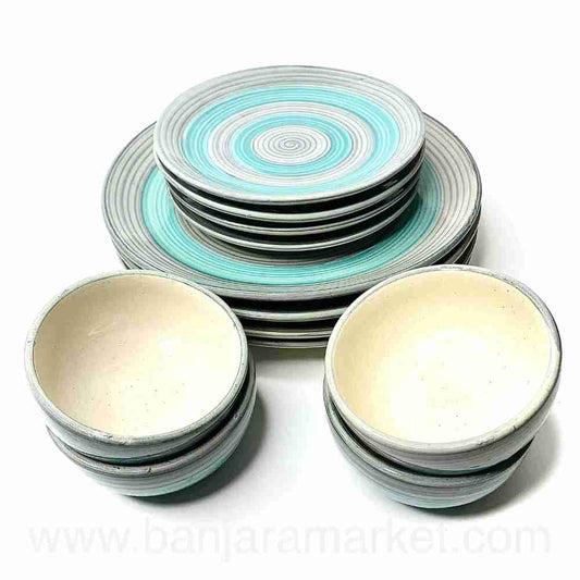 Banjara Market | Blue-Grey Rings Dinner Set (Set of 12)