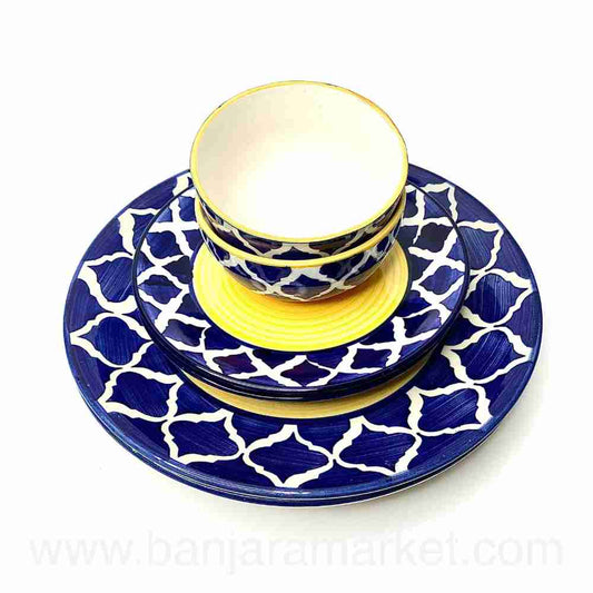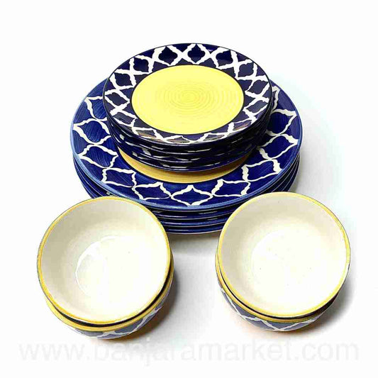 Banjara Market | Yellow-Line Blue Moroccan Dinner Set (Set of 12)