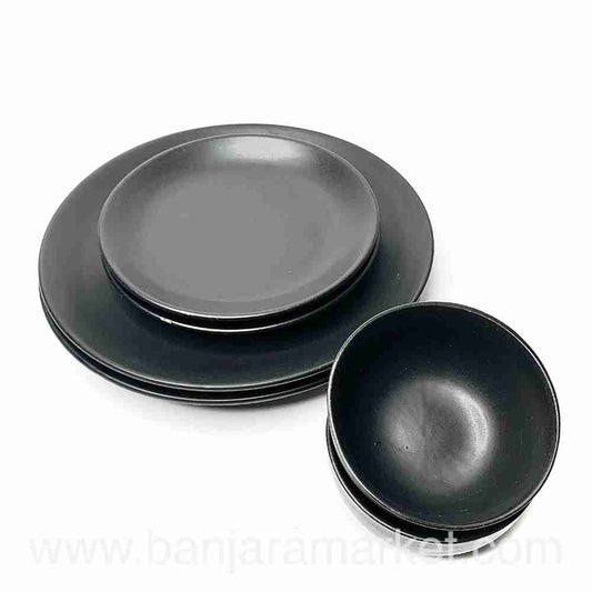 Banjara Market | Matt Black Dinner Set (Set of 12)
