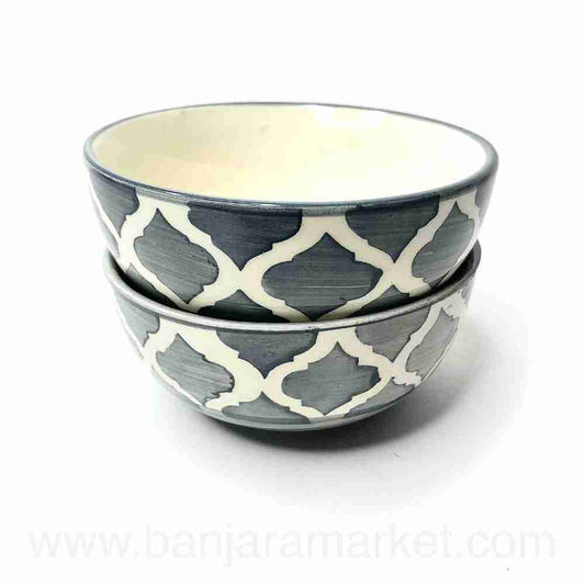 Banjara Market | Grey (Diamond) Soup Bowls (Set of 2)