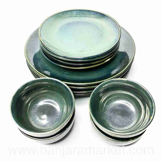 Banjara Market | Moss Green Dinner Set (Set of 12)