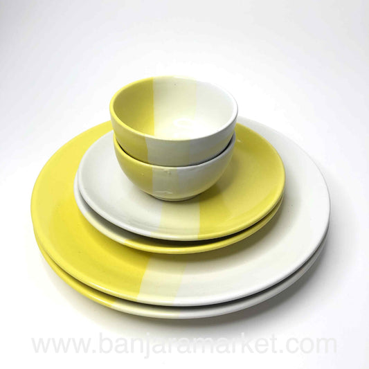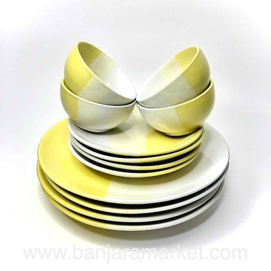 Banjara Market | Yellow-White Dual Tone Dinner Set (Set of 12)