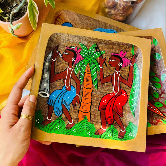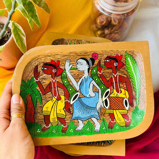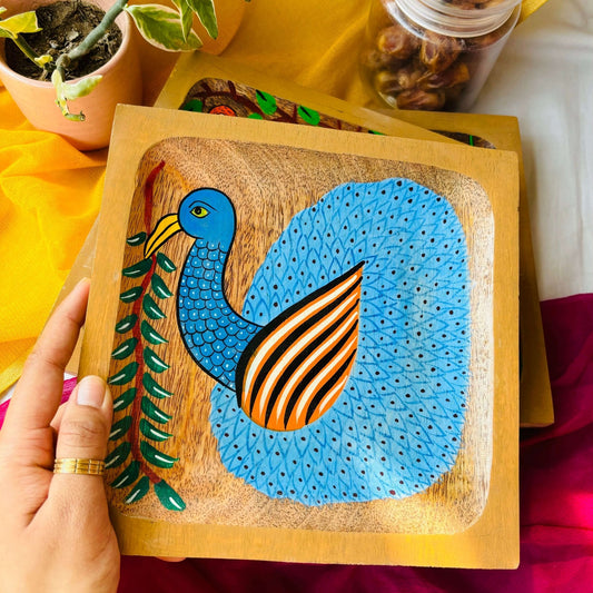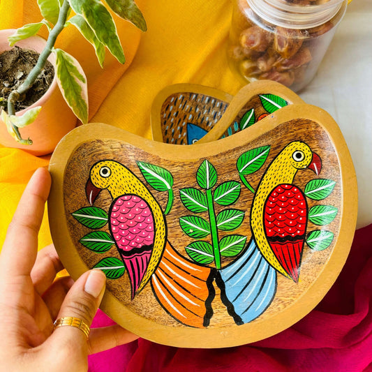 Sheesham Wooden madhubani painted serving platter(Set of 2)