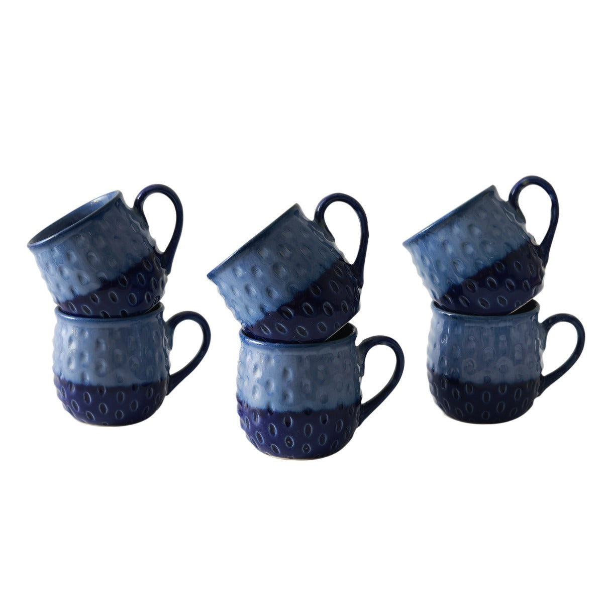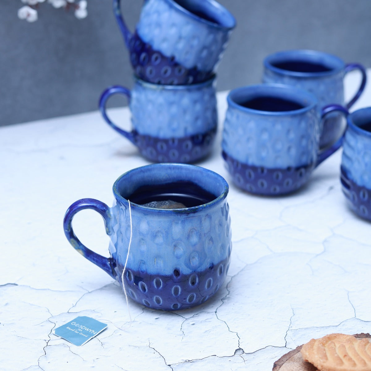 "Polka Dots" studio glazed ceramic tea/coffee mug set(Set of 6)