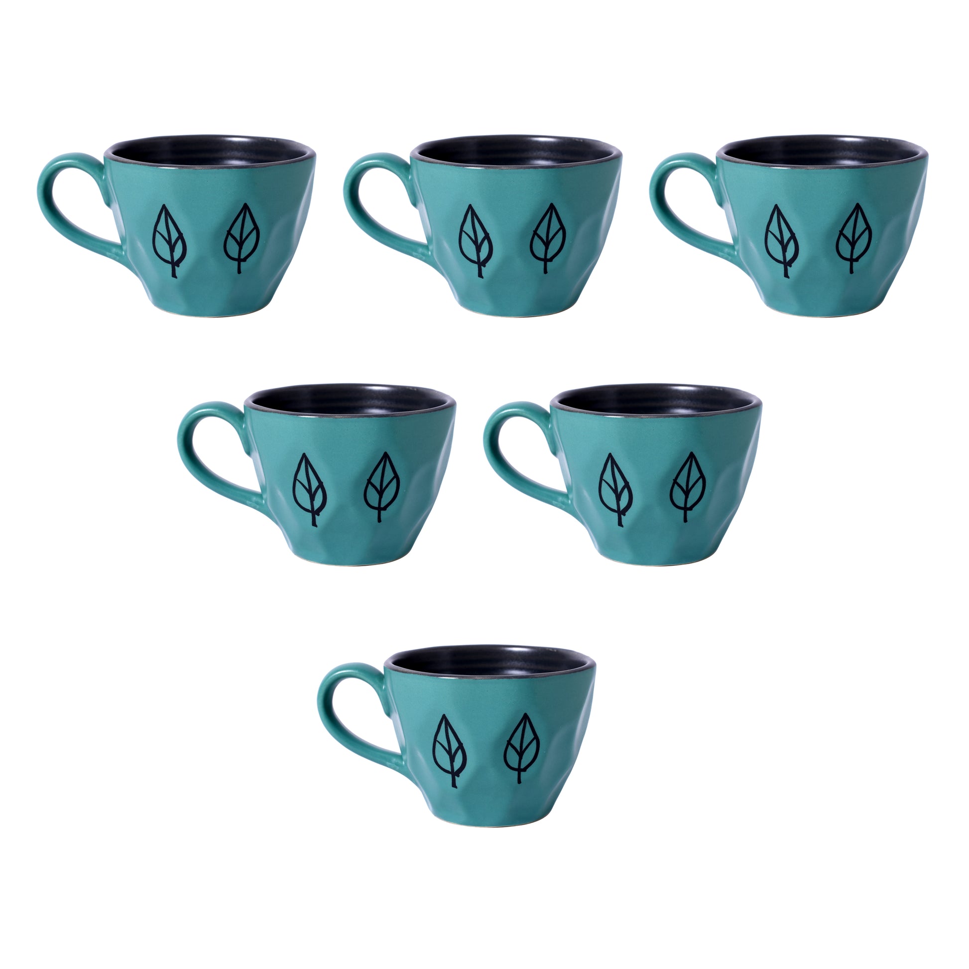 Studio Pottery Ceramic Coffee Mugs and Ceramic Tea Cups (Set of 6, Blue & Black)