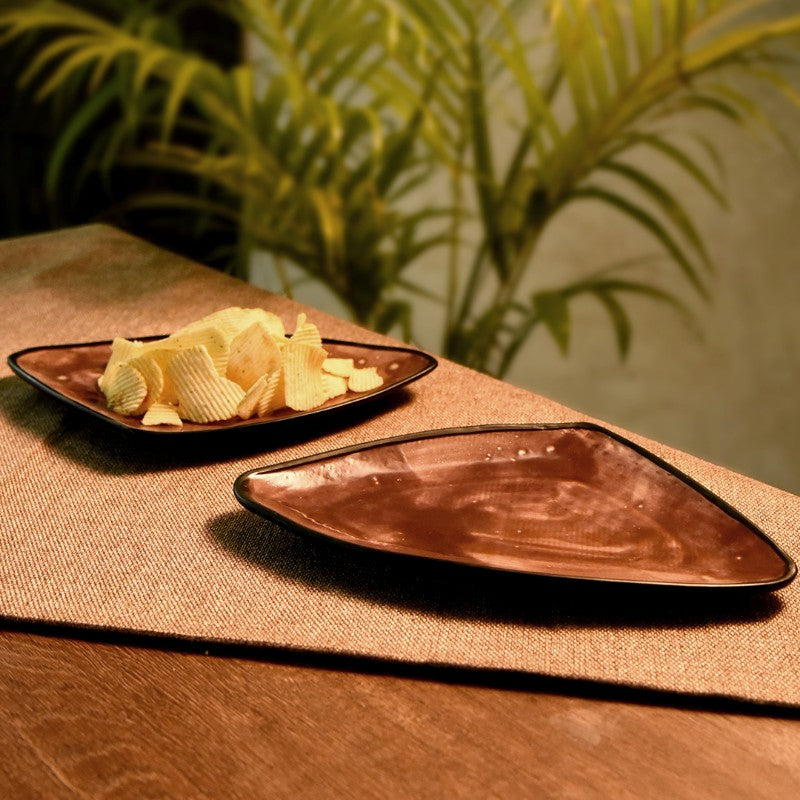 Triangular Style Studio Pottery Ceramic Snacks Starters Serving Platter, (Metallic Red, Set of 2)